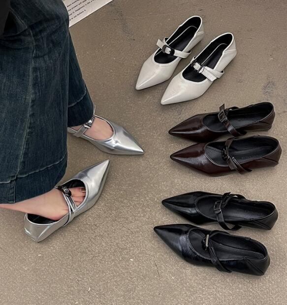 シューズ 靴 レディース パンプス フラット フェイクレザー 尖り メアリージェーン